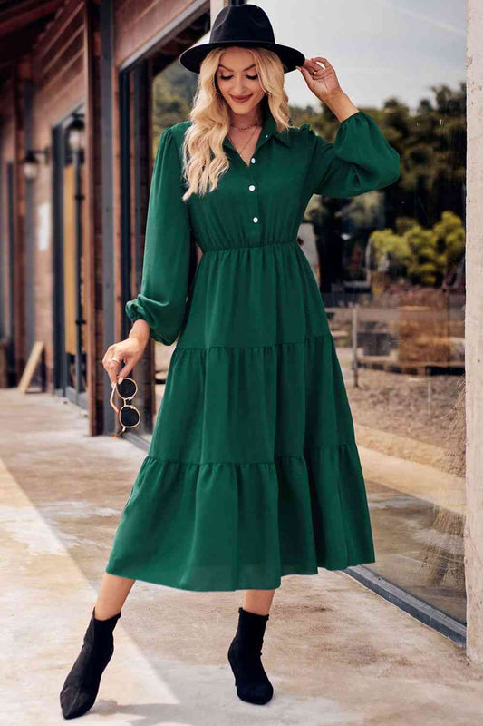 Buttoned Collared Neck Dropped Shoulder Mini Dress